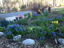 That was until I turned around to head back home and got to watch the colors of the sun bounce off the tree tops and branches and light up the woods with its splendor. And then arriving home I was able to soak in my very pretty spring bulb garden bursting with color and happiness. And so was I. All a part of the plan!