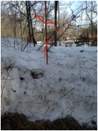 Gratefully the snow is melting. The stake with orange tie marker my husband put out front 6 days ago shows just how much the snow pile has melted. Progress and hope measured with each inch that melts away!