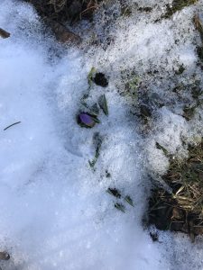 This year she has a partner who popped out to join her for their first spring appearance on March 12th. The snow had been piled high on top of them and just melted away a day or so before they bloomed.