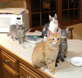 The only good-ish picture I could get of the four of them together as young ones…ever try to capture four on the move kittens at one time when you want to?